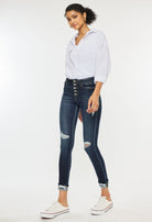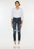High Rise Button Down Cuffed Ankle Skinny Jeans