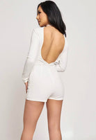 Women's Long Sleeve Open Back Mesh Studs Romper
