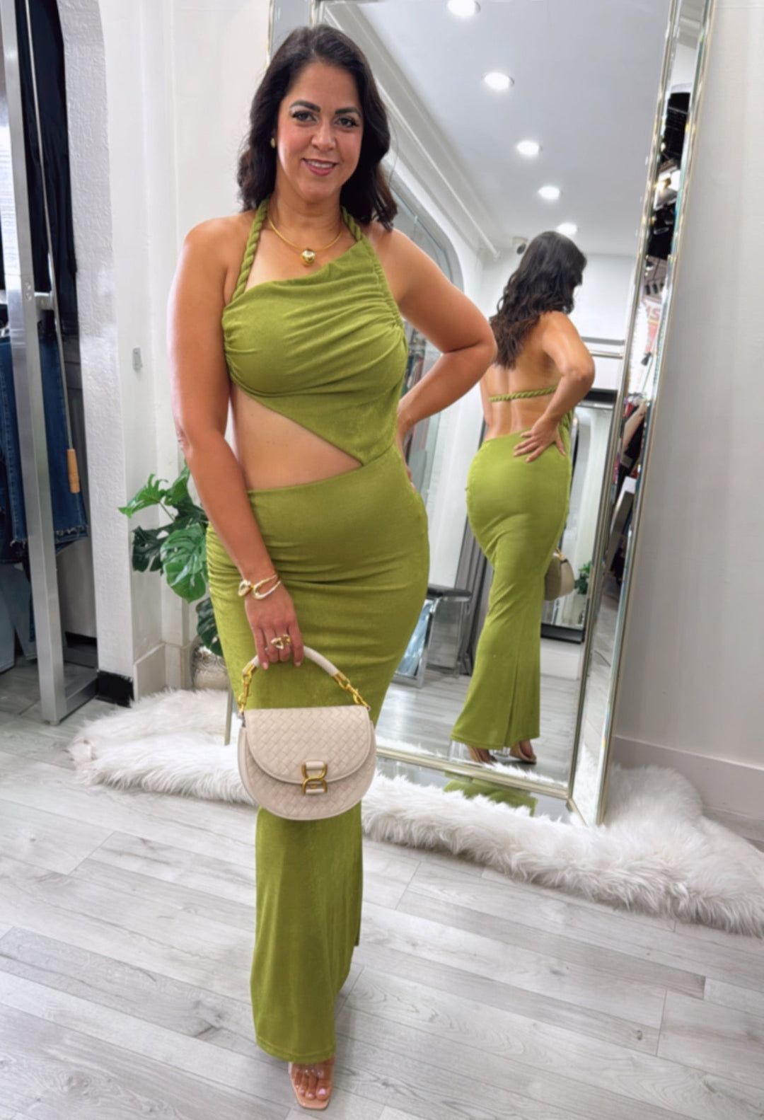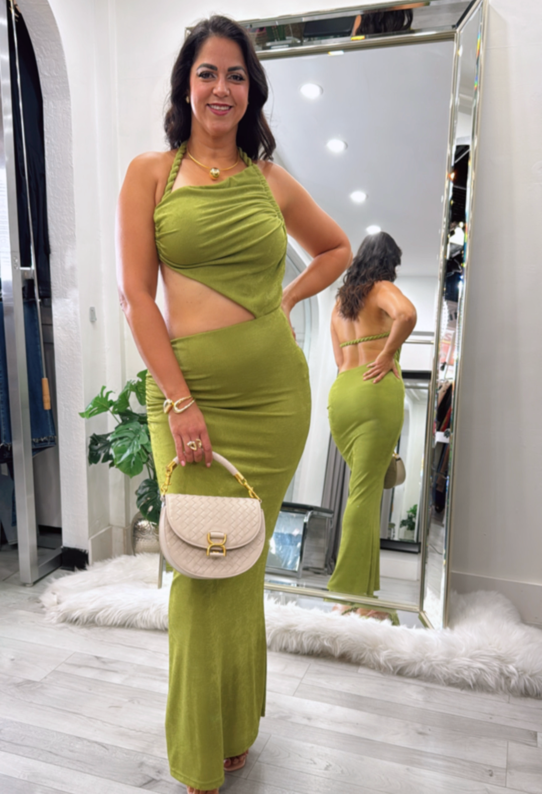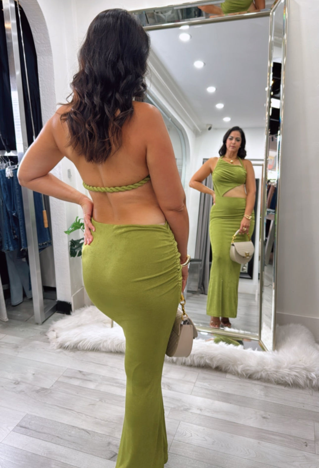 Sexy Pearl Mesh Side Slitted Ruched Midi Dress
