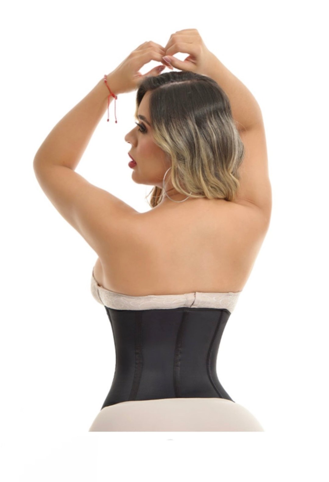 • La compresión se enfoca en el área de su abdomen, cero compresión en el área de tu glúteo para que no sea reducido sino solo moldeado, simplemente manteniendo su cuerpo como una figura de reloj de arena.