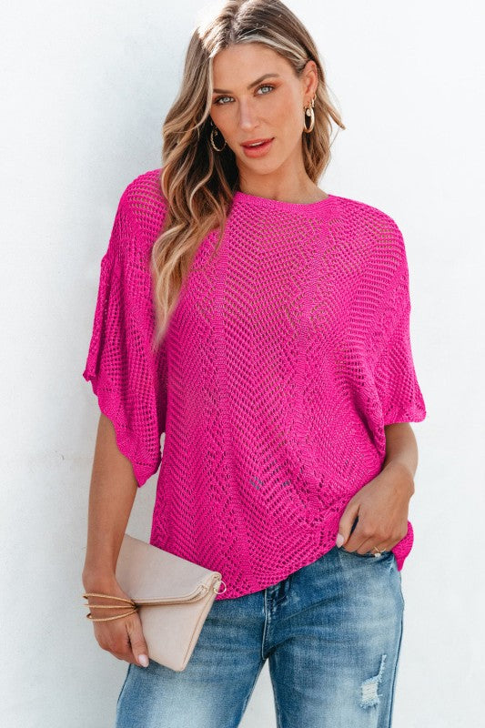 Introducing the Short Sleeve Top, your new go-to for effortless style! This charming piece features a delicate pointelle knit that brings a touch of feminine elegance, while playful scalloped edges add just the right amount of personality. The breezy short sleeves keep you comfortable all day long, whether you're heading to brunch or a casual night out. Dress it up with tailored trousers or keep it relaxed with your favorite jeans-this versatile beauty works for any occasion. 100% Acrylic