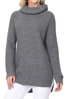 Turtleneck Oversized Waffle Knit Tunic Sweater