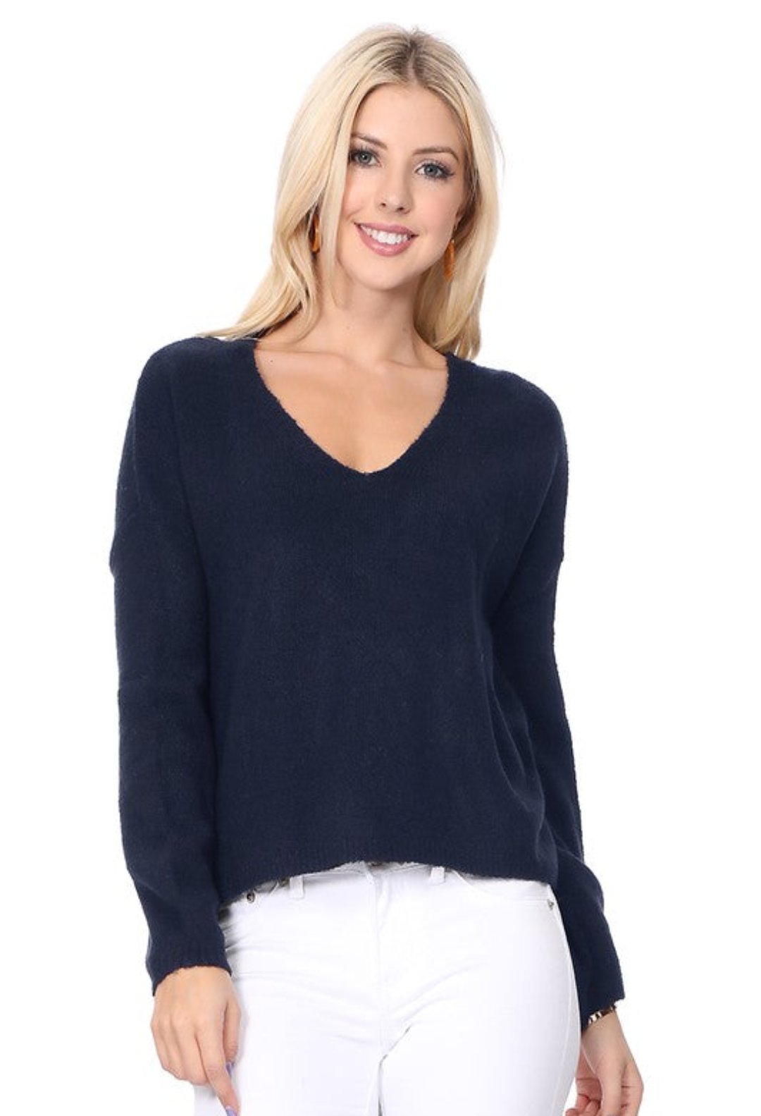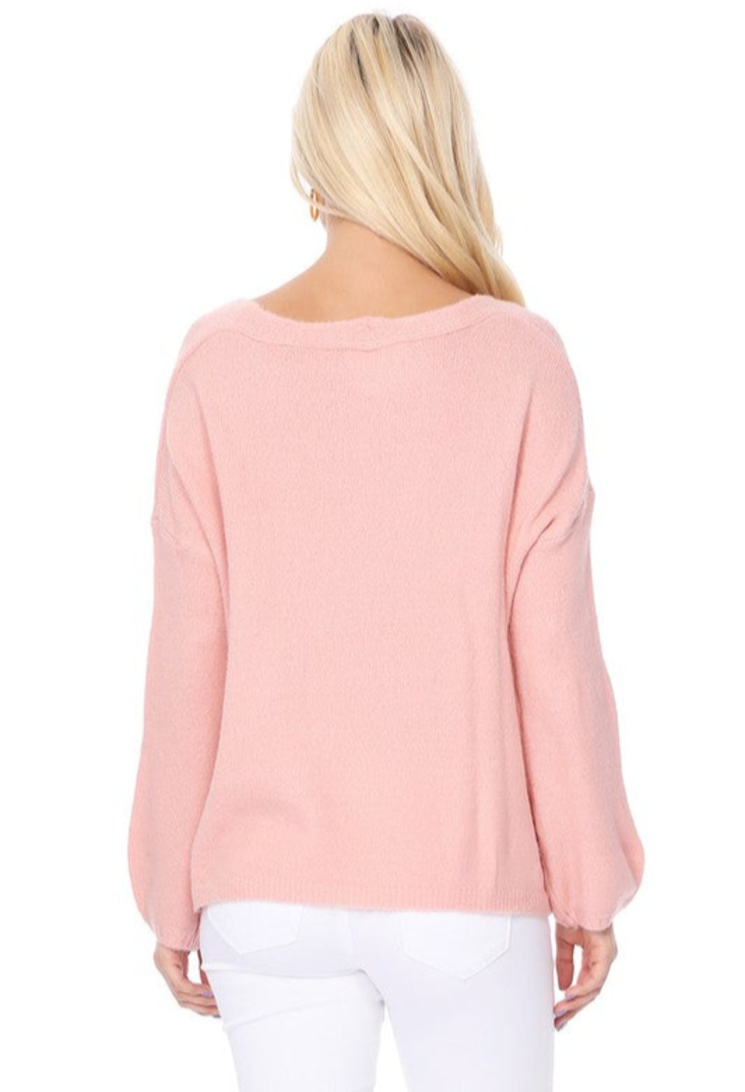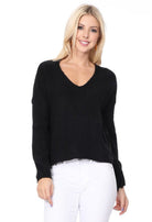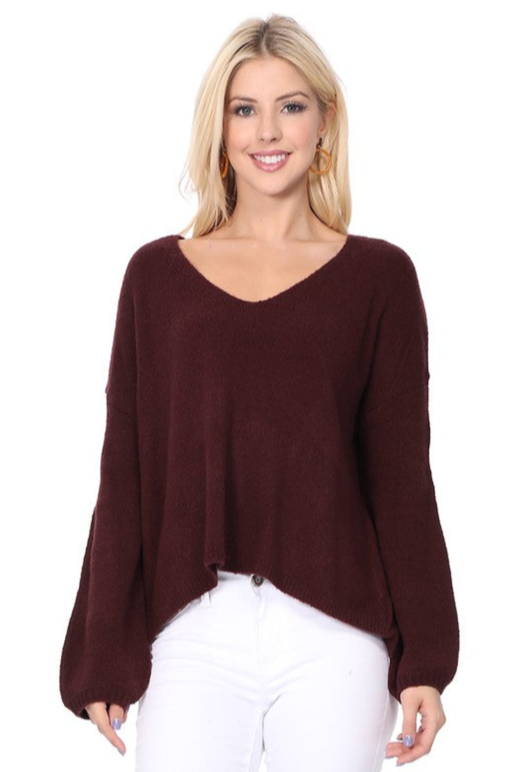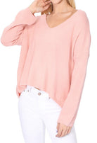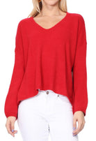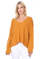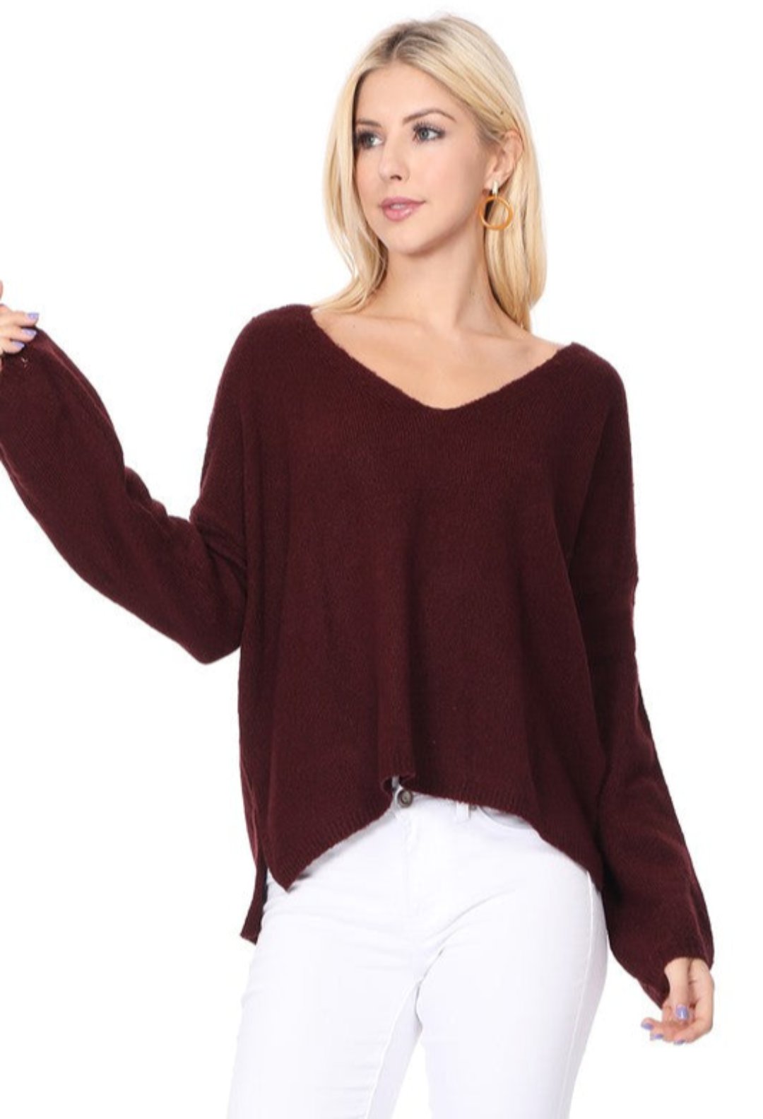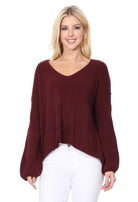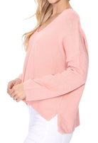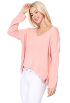 Wide V-Neck Oversized Sweater Top w. Side Slit