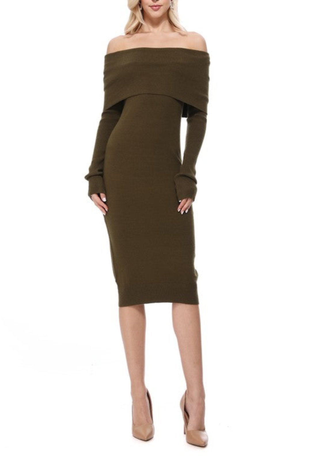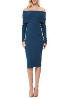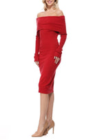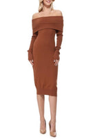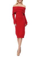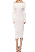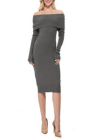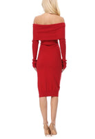 Off Shoulder Long Sleeve Slim Fit Midi Knit Dress