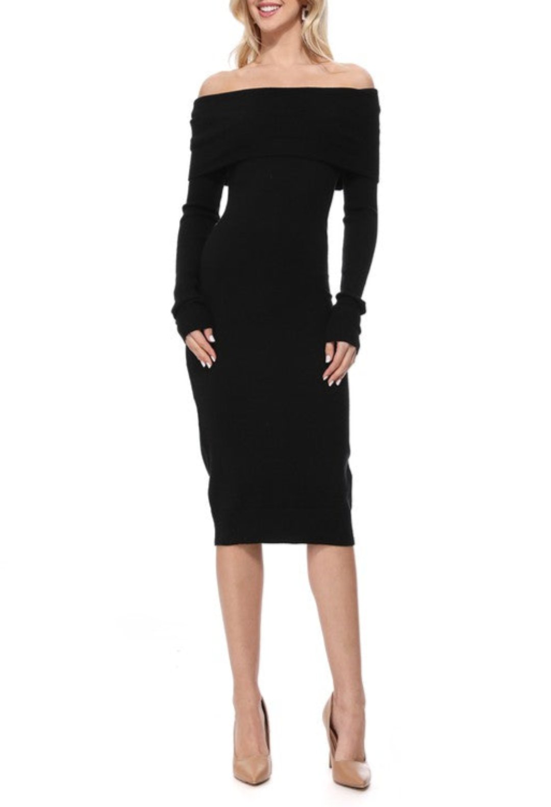 - Off-shoulder neckline and Fold Over shoulder ribbed long sleeve dress.
